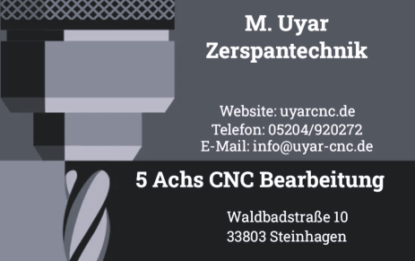 Kontakt Telefon: 05204/920272 Telefax: 05204/920273 E-Mail: info@uyar-cnc.de
